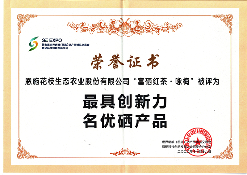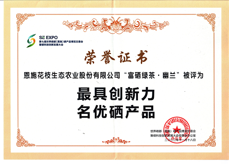 這次大會參選的名優(yōu)硒產(chǎn)品,經(jīng)過行業(yè)專家、檢測機(jī)構(gòu)層層篩選、評定,花枝茶業(yè)選送的“富硒紅茶-詠梅、富硒綠茶-幽蘭”在數(shù)百家產(chǎn)品激烈競爭中,脫穎而出,雙雙被評為“最具創(chuàng)新力名優(yōu)硒產(chǎn)品獎”!